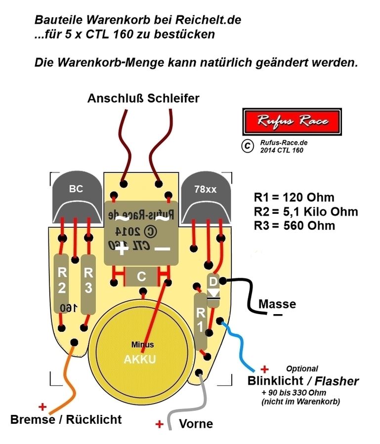 Wer keine Flash oder Blink LED verbaut, kann auch 2 rote Bremsleuchten verbauen !